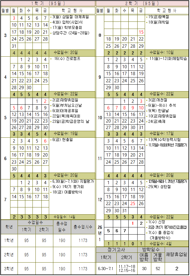 * 연간학사일정은 학교사정에 따라 중간에 일부 변동될 수 있습니다.